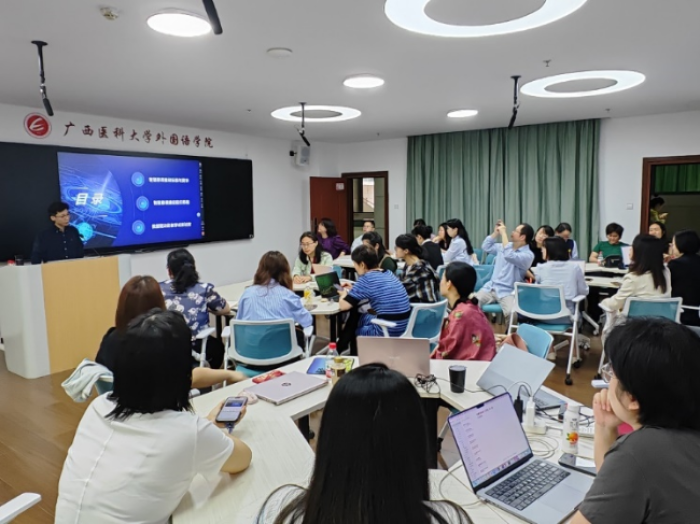 为推动AI技术与外语教学深度融合,提升公司课程建设质量,谈球吧启动智慧课程建设系列工作坊。2026年3月27日,第一期工作坊成功举办,本次活动邀请到超星集团高级教学设计师、智慧教学研究院资深研究员李敏玉副教授担任主讲,全院教师参与。