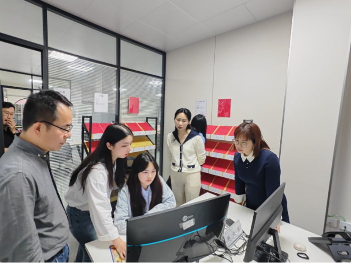 在公司总经理叶珵陪同下,公司一行首先参观了公司办公场所及实习生工作岗位,了解了实习生目前负责的国外客户联络相关工作内容。随后的座谈交流中,叶珵介绍了企业发展概况、实习带教机制及人才招聘需求,公司人员一方面详细询问实习生的日常工作表现、岗位适配情况,与企业就后续实习基地建设、人才联合培养等内容交换意见;另一方面与实习生深入交流,全面了解其参与岗位培训、适应工作节奏及实习收获等方面的情况。